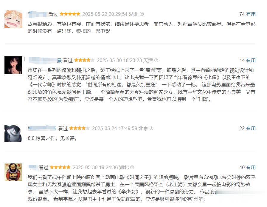 | 当《哪吒2》的票房神话还在被津津乐道时,一部名为《时间之子》的国产动画新作正在创造属于自己的传奇。 截至6月7日中午,这部由于奥和周铁男联合执导的奇幻爱情动画电影票房正式突破了1亿人民币,预计最终将会超越1.5亿,成为2025年暑期档开端最耀眼的黑马之作。 国产动画新片《时间之子》,是由于奥和周铁男联合执导,于奥、周铁男还有舒奕橙共同撰写剧本,王俊凯、周深、黄渤、贾冰、马东和金靖等多位知名演员集体配音。 它主要讲述了冷面杀手十七与渔村少女千晓因神秘时轮结缘,一个想“离职”找自由,一个想“离岛”寻精彩,他们决定暂时合作成为“一日时轮搭子”,在繁华的大都会开启了一场有惊有喜的浪漫奇遇。在这个过程中,十七和千晓的关系悄悄发生着变化,从最初的冤家对头逐渐变成了默契搭档,两颗心在不经意间靠近的同时,殊不知时轮背后的秘密,也在悄然影响着两人命运的故事。 阵容很强大,故事情节也很新颖,这使得《时间之子》得到了很多观众的关注和期待,它也因此在上映之后获得了巨大成功。 《时间之子》内地日票房一直紧随好莱坞大片《碟中谍8》,稳居第二名,目前累计票房已经正式突破1亿人民币。 作为一部令人关注和期待的国产动画影片,《时间之子》于今年5月30日登陆内地影院之后,也是展现了很强的票房收割力。它曾实现了连续三天的票房逆跌,接连赶超了《星际宝贝史迪奇》和《哆啦A梦》等多部高关注度电影,并一路紧随汤姆克鲁斯主演的好莱坞大片《碟中谍8》,稳居中国内地日票房亚军的位置。 借此,该片仅仅只用了不到9天的时间,就让自己的累计票房突破了1亿人民币,成为本年度第18部实现票房破亿的影片。 《时间之子》观众口碑大爆,评分将会超越《哪吒2》。 在国内大部分观众的心目中,饺子导演的《哪吒2》绝对是毫无争议的“国漫之光”。 该片不仅创造了将近159亿人民币的超高票房,成功挺进了全球票房榜前五名,它还得到了大部分观众的集体好评,有将近140万观众在网上为其打出了8.5分。这也是本年度,我们国内电影所创造的最高分数。 不过,如今随着《时间之子》的出现,《哪吒2》的评分或许将会被超越。 《时间之子》在国内之所以能够创造破亿的票房成绩,主要还是在于它的质量过硬,观众口碑非常好。 不少观众看过此片之后都表示:“这是一部很惊艳的国产原创动画,情感纯粹,歌曲也好听,画面也绚丽多彩。自己也是因为此片,而燃起了支持国漫的想法。” 如此,相信《时间之子》开分之后,分数将会超越《哪吒2》,成为本年度口碑最好评分最高的电影,它也将锁定自己暑期档开端“黑马”的地位。 |